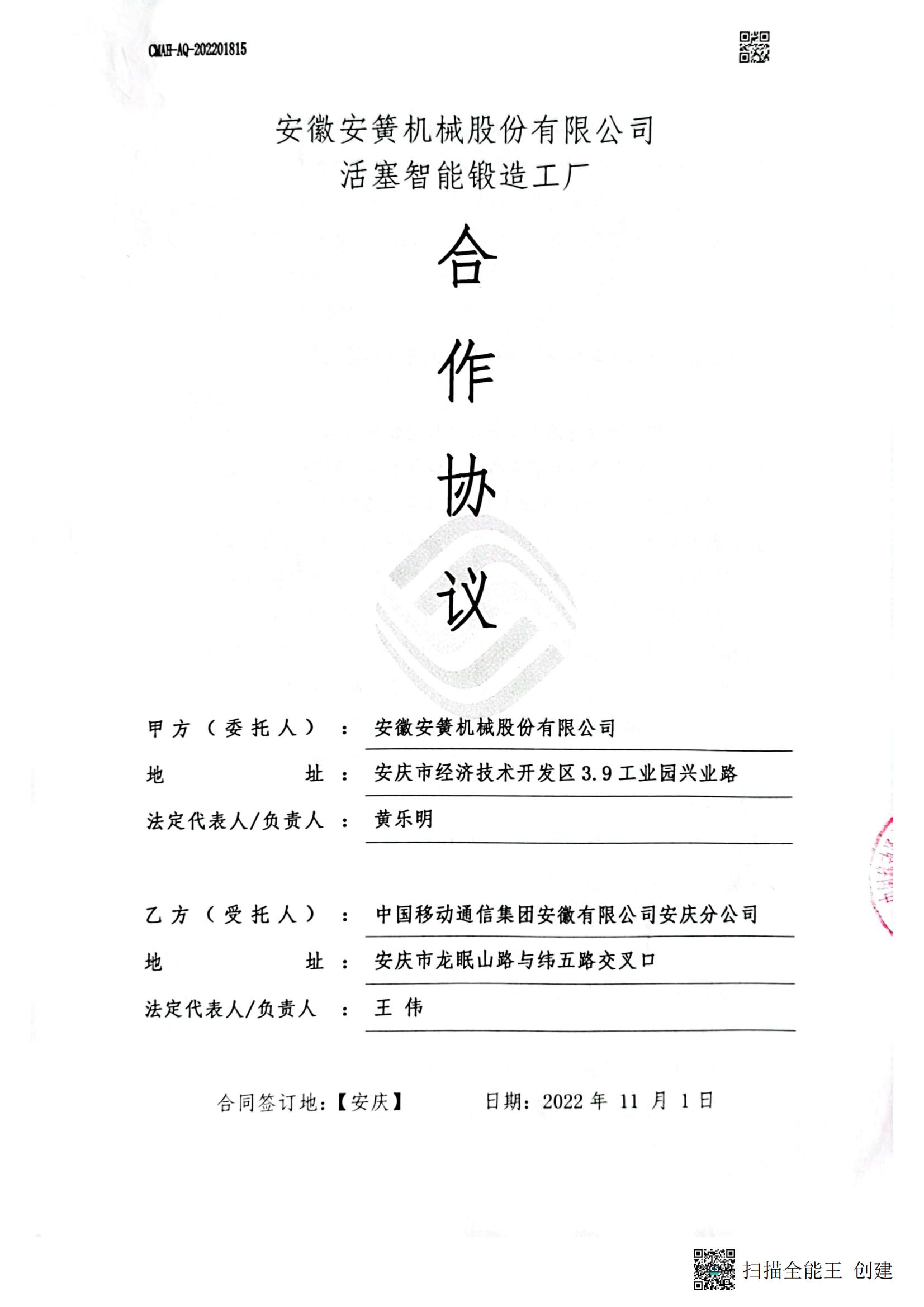 安簧機(jī)械股份有限公司與中國(guó)移動(dòng)公司簽訂5G智能工廠協(xié)議
